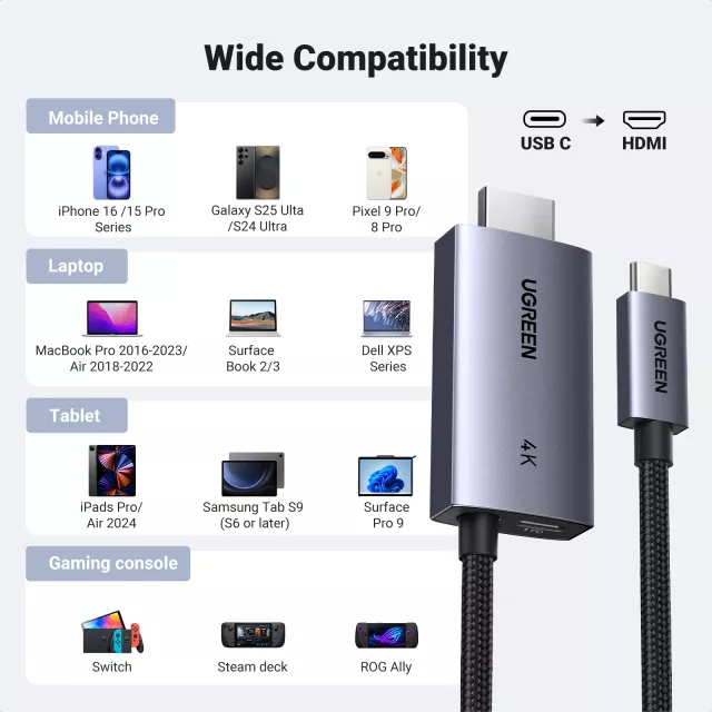 • Universal Compatibility – Works with laptops, tablets, smartphones, TVs, projectors, monitors, and more.