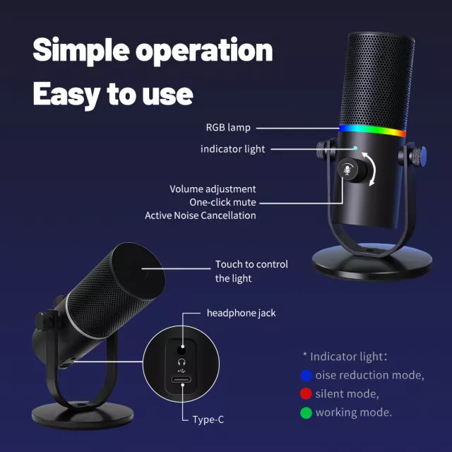 Upgrade your recordings with this versatile USB gaming microphone. From intelligent noise reduction and high-resolution sound to vibrant RGB lighting and a shockproof stand, it’s built for creators who demand professional audio and style. Make every stream, recording, and gaming session sound extraordinary!