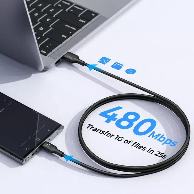 • High-Speed Data: Transfers files quickly at 480Mbps, making syncing effortless.