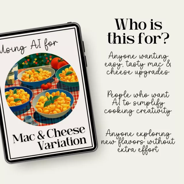 I've learned how to use AI for creative mac & cheese variations with ease and confidence, thanks to this guide! Itโs perfect for anyone who loves experimenting in the kitchen.