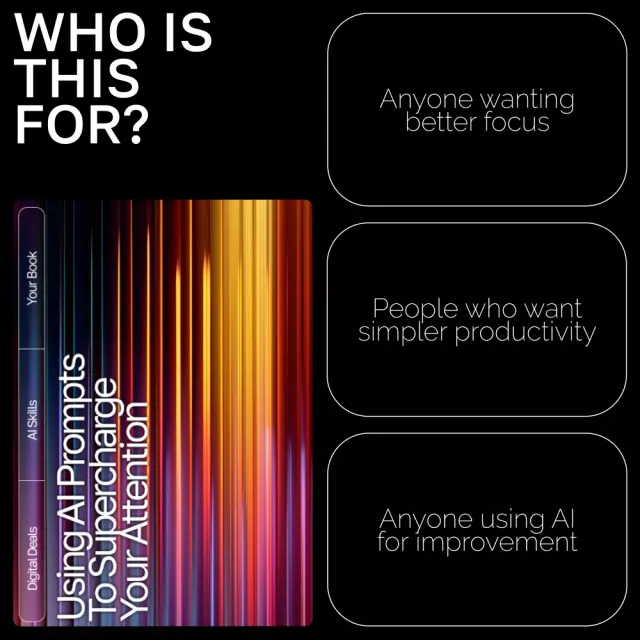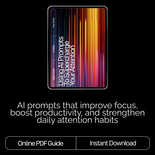 Unlock the power of clearer thinking and sharper focus with Using AI Prompts to Supercharge Your Attention, a practical and inspiring eBook designed to help you take control of your attention in a distracted world. Whether you’re juggling work, study, or personal goals, this digital guide shows you exactly how to use AI to create mental clarity, streamline your day, and build a sustainable focus system. Perfect for anyone seeking ai prompts for focus improvement, this resource blends science-backed insights with real-world examples and easy-to-use tools.