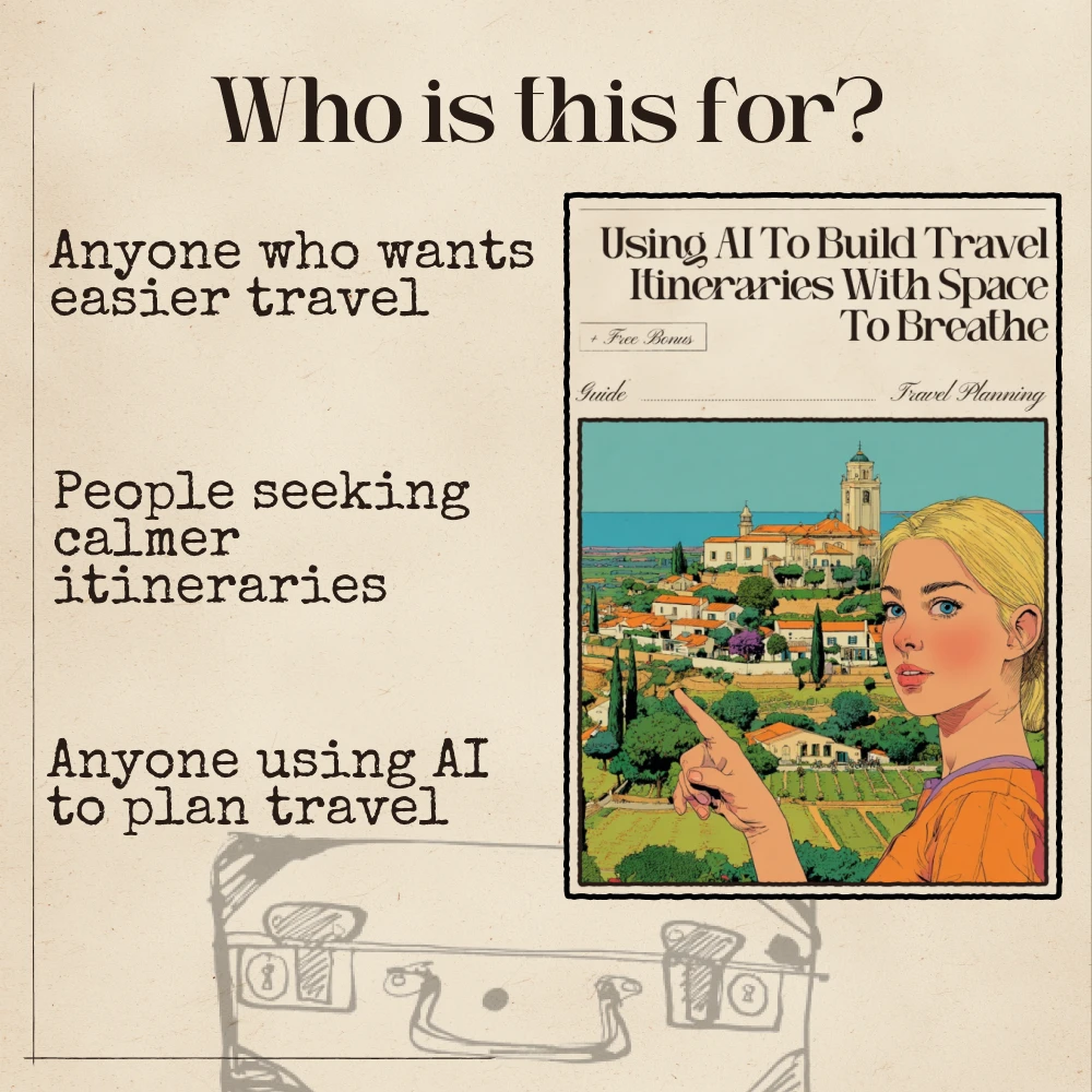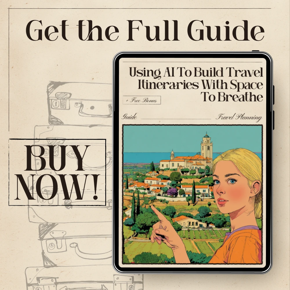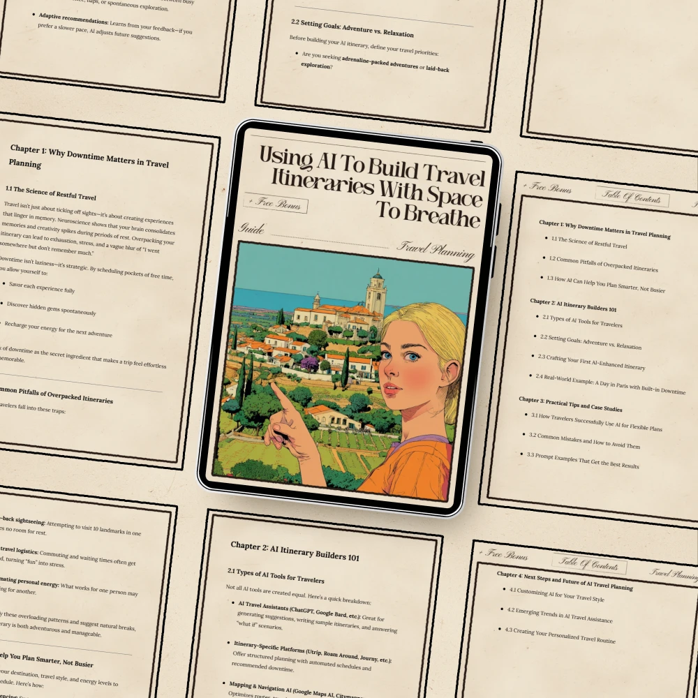 Download Using AI to Build Travel Itineraries with Space to Breathe today and start creating travel plans that energize you—not exhaust you. Your calm, beautifully balanced adventure starts here.
