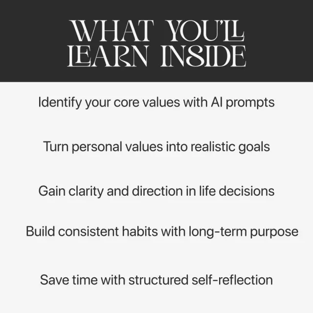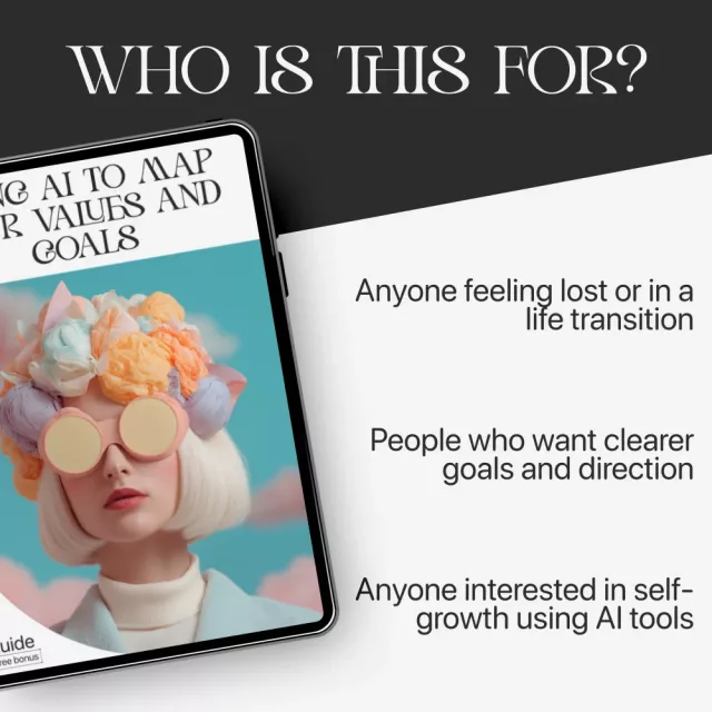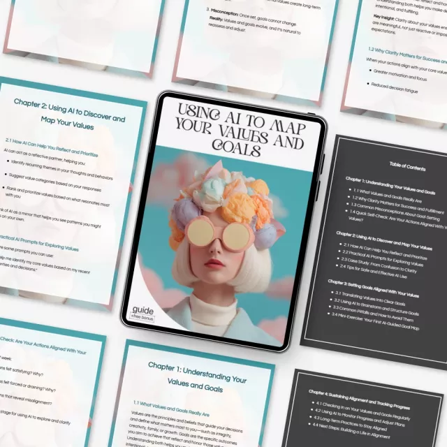 Start creating a life that feels aligned, intentional, and true to you. Download Using AI to Map Your Values and Goals today and let AI help you uncover your clarity, direction, and purpose – one prompt at a time.