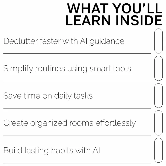 • Chapter 4: Next Steps & Tips for Long-Term Success – Mistakes to avoid – Prompt examples for effective AI use – How to maintain an organized home with AI