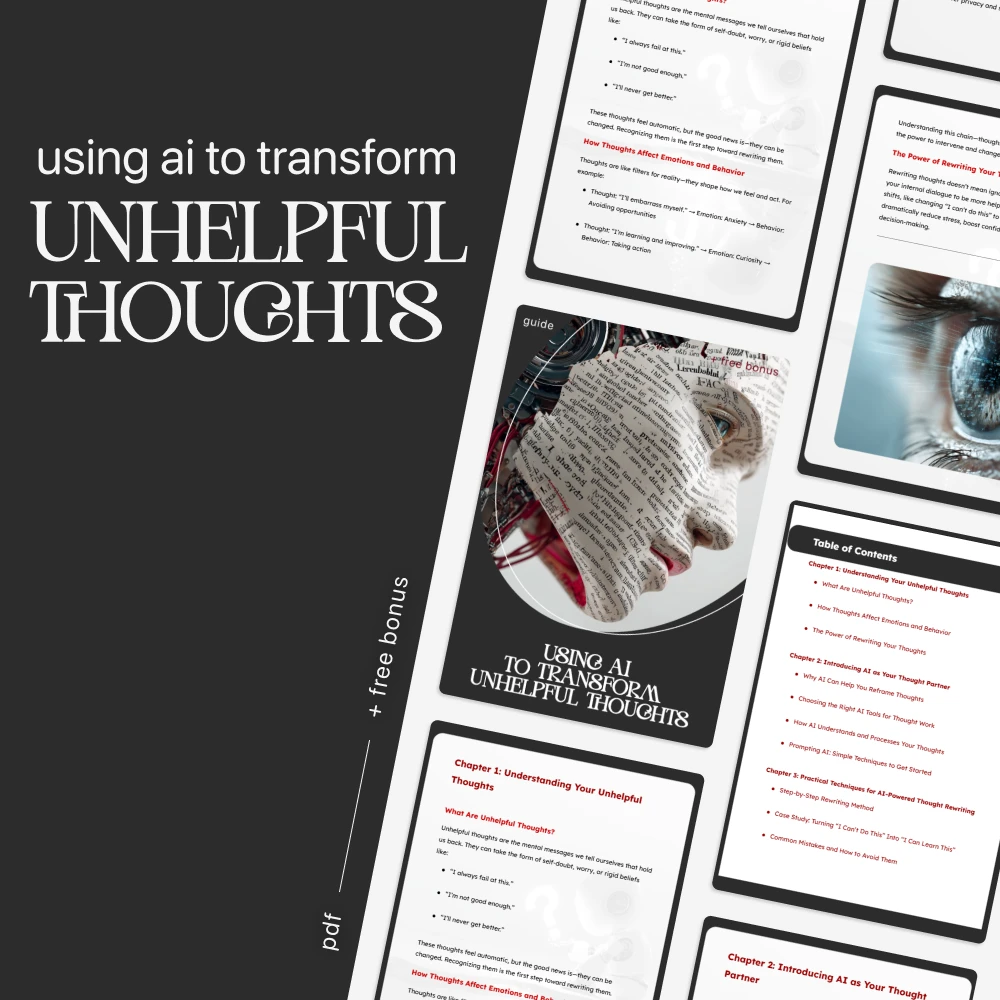 What if you could stop spiraling over negative thoughts and start rewiring them into empowering ones using tools you already have access to? Using AI to Transform Unhelpful Thoughts is a practical, easy-to-follow digital guide that teaches you how to use ai to rewrite unhelpful thoughts in a way that actually sticks. Instead of fighting your mind, you’ll learn to work with it, using artificial intelligence as your supportive thought partner. This guide blends psychology, real-life examples, and AI prompting techniques into a powerful, step-by-step system you can start using today.