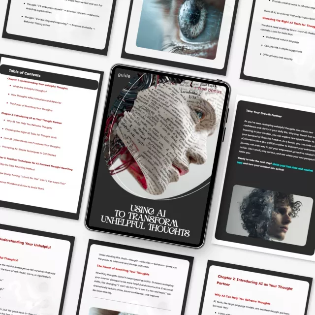 Don’t let unhelpful thoughts control your life any longer. Download Using AI to Transform Unhelpful Thoughts today and take your first step toward a calmer, clearer, and more empowered mind. Click purchase now and start transforming your thoughts with AI.