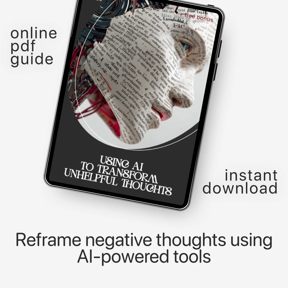 Once purchased, you’ll receive immediate access to your downloadable guide so you can start practicing how to use ai to rewrite unhelpful thoughts right away, at your own pace, on any device.
