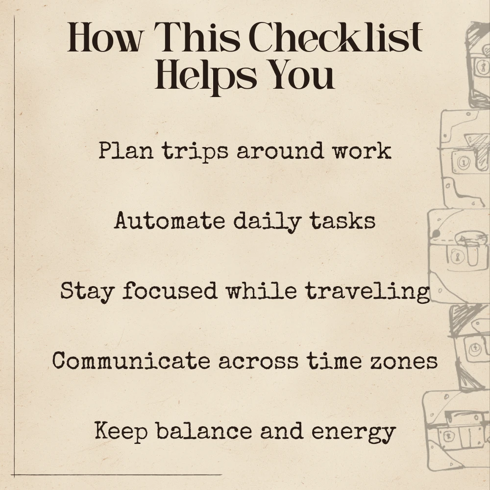 Perfect for remote workers, freelancers, digital nomads, and anyone eager to blend productivity with adventure. If you’re looking for smart, stress-free ways to stay organized on the road, this checklist will show you how to use ai tools for balancing work and travel to achieve it with ease.