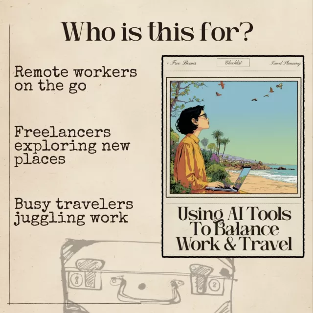 Discover how to simplify your life on the move with Using AI Tools to Balance Work & Travel — a practical digital checklist for mastering ai tools for balancing work and travel. This guide helps you stay productive, organized, and well-balanced wherever you go. Whether you’re planning a short business trip or living the digital nomad dream, this tool makes it effortless to blend focus and freedom through smart automation and simple structure.