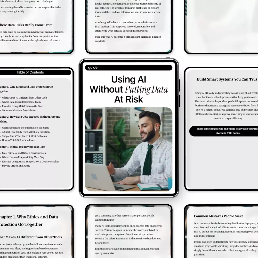 Step into the world of AI with confidence and care. Using AI Without Putting Data at Risk is a comprehensive digital guide that helps you navigate the complex intersection of AI ethics and data protection. Whether you’re a professional, a team leader, or simply curious about responsible AI use, this guide gives you the tools and knowledge to protect sensitive information while making the most of AI technology. Avoid common pitfalls, build safer habits, and make AI a supportive tool rather than a hidden risk.