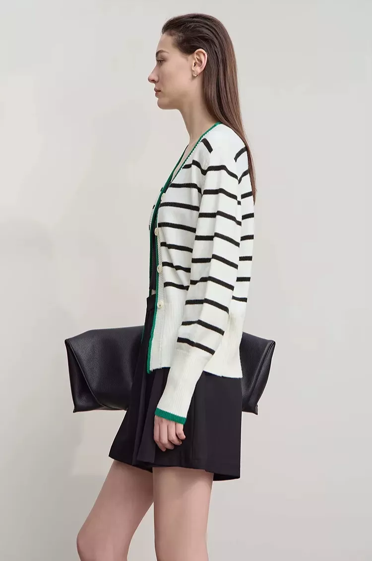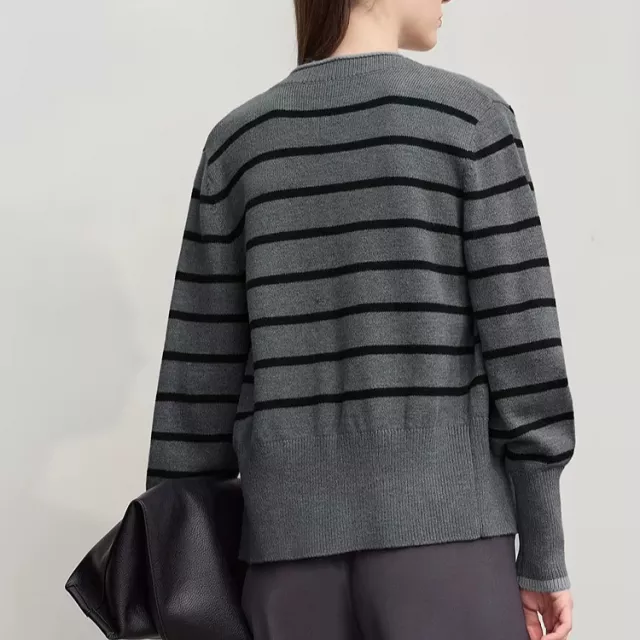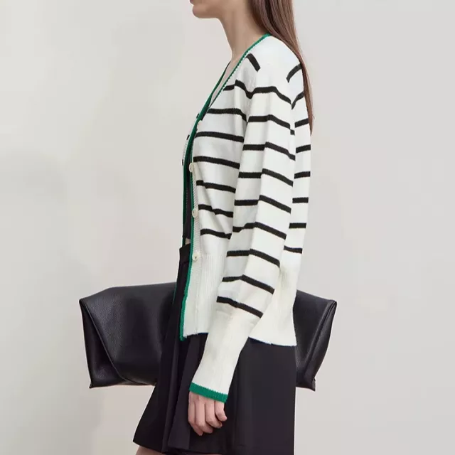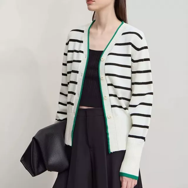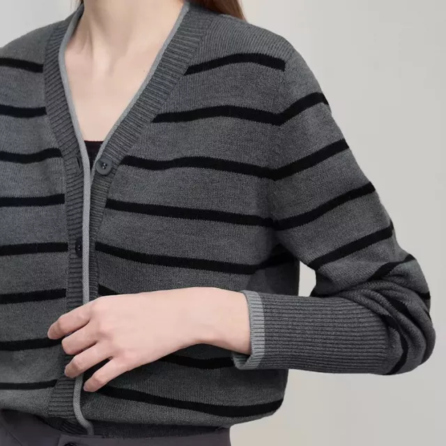 What makes this cardigan special is its beautifully knitted texture paired with clean vertical stripes that flatter the figure while giving it a timeless charm. The standard-thickness fabric provides just the right warmth without feeling bulky, making it ideal for all-day wear. Whether you’re heading to the office, enjoying a weekend coffee run, or dressing up your casual look, this cardigan fits seamlessly into your wardrobe.