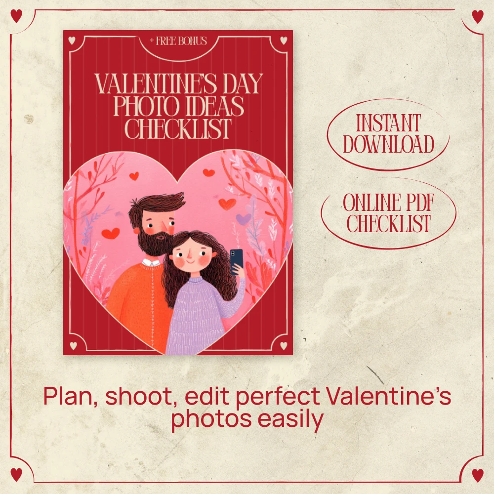 Valentine’s Day Photo Ideas Checklist | Easy Valentine’s Day Photo Ideas Planner for Couples, Solo Shoots & Content Creators