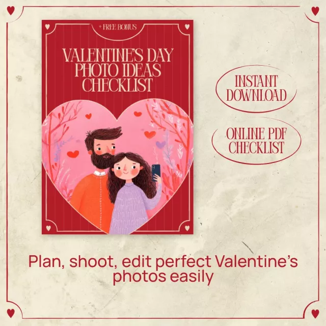 Bring your valentine’s day photo ideas to life with a clear plan and creative confidence. Download the Valentine’s Day Photo Ideas Checklist now and start capturing moments you’ll love looking back on.