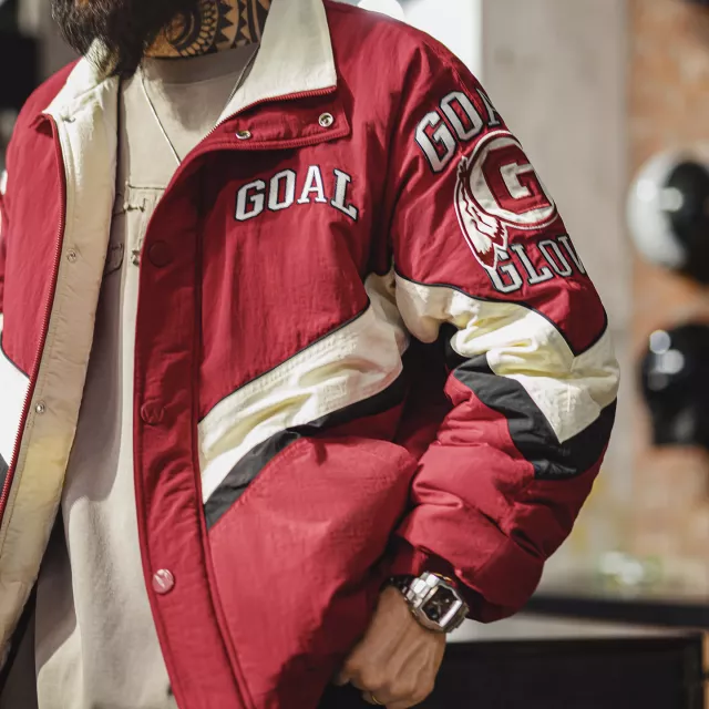 Turn heads the moment you step outside with this bold, vintage-inspired racing jacket. Designed with striking color-blocking in red, white, and black, plus detailed embroidered patches, it brings a retro motorsport vibe into your modern streetwear wardrobe. Thick padding, quilted lining, and a wind-resistant snap placket keep you warm during chilly autumn evenings and cold winter days. Whether you’re heading out with friends, layering for your commute, or elevating your casual outfits, this jacket delivers both comfort and attitude.