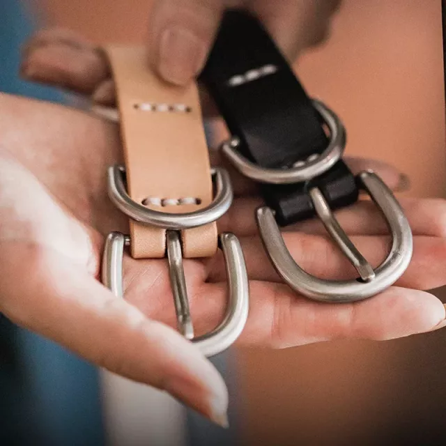 Elevate your outfit with this vintage-inspired genuine leather belt crafted from premium vegetable-tanned cowhide. Designed with a chic double-ring metal buckle in contrasting sizes, this accessory blends casual charm with versatile elegance. The classic black and natural leather tones create a sophisticated color pairing that complements any wardrobe. At 45.3 inches long and 0.94 inches wide, it offers the perfect balance between style and practicality.