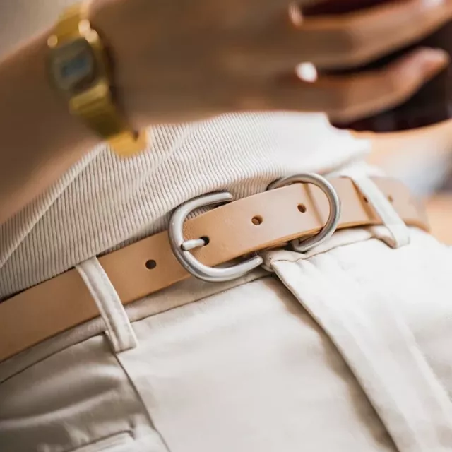 This belt is made from the first layer of cowhide, treated with a traditional, eco-friendly vegetable tanning process. This method preserves the natural grain, unique markings, and rich luster of the leather. Over time, it develops a softer sheen, making it even more beautiful the longer you wear it. The solid alloy buckle adds durability and a subtle metallic accent, making it a long-lasting accessory you’ll reach for again and again.