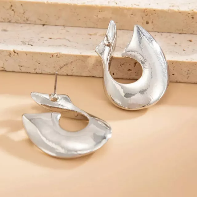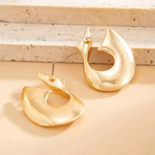Step into the spotlight with these stunning vintage gold-colored hoop earrings, designed to make a statement. Featuring an irregular geometric curve, these earrings blend retro elegance with contemporary edge, perfect for women who love to stand out. Crafted to impress, they add an eye-catching flair to any party or casual outfit.