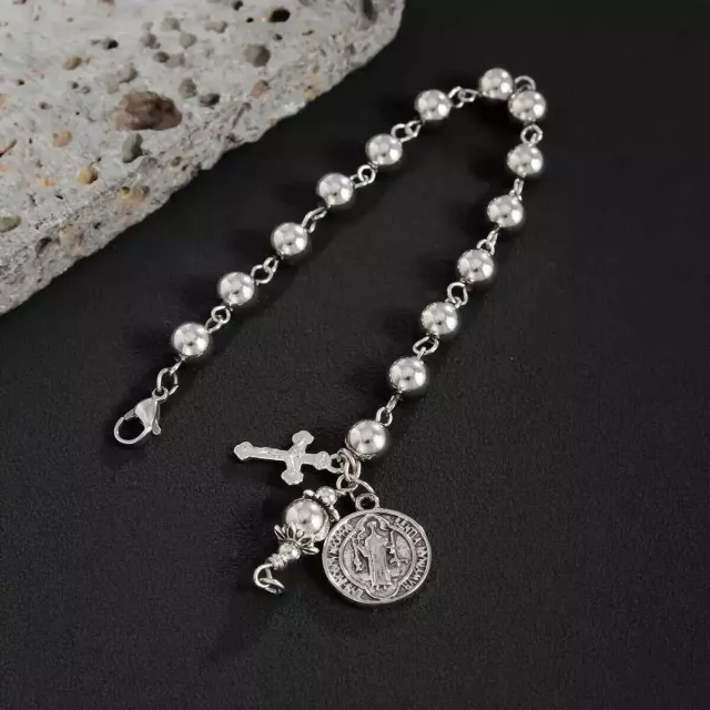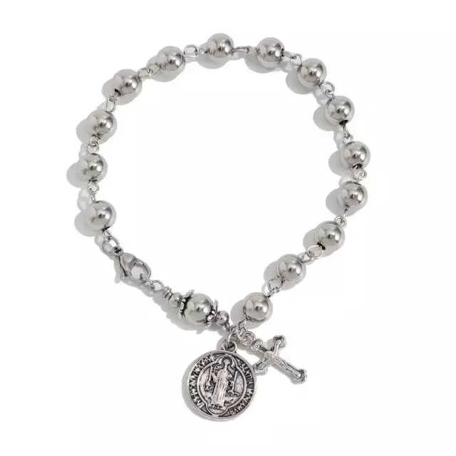 Made from durable stainless steel and zinc alloy, this bracelet ensures long-lasting wear without losing its shine. The smooth round beads feel comfortable against your skin, while the secure cuff style offers easy wear without the hassle of clasps. With a sleek metallic finish and a meaningful pendant, it’s a versatile piece that can be worn alone for a subtle statement or layered with other accessories for a bolder look.
