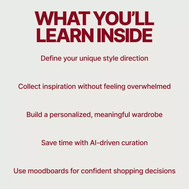 Unlike other fashion resources, “Visual Style: Designing Your Fashion Moodboard” combines both creative and practical insights, blending the best of traditional styling with modern tools like AI. This is more than just a basic moodboard guide—it’s a tool that helps you define and refine your style, providing you with the knowledge to confidently shop, style, and build a wardrobe that truly reflects who you are.