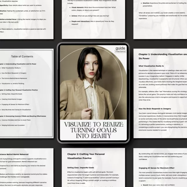 Don’t let your goals stay in your head—bring them to life. Download Visualize to Realize: Turning Goals into Reality today and discover how to use visualization for goals to create lasting motivation, focus, and results. Your reality starts with what you see.