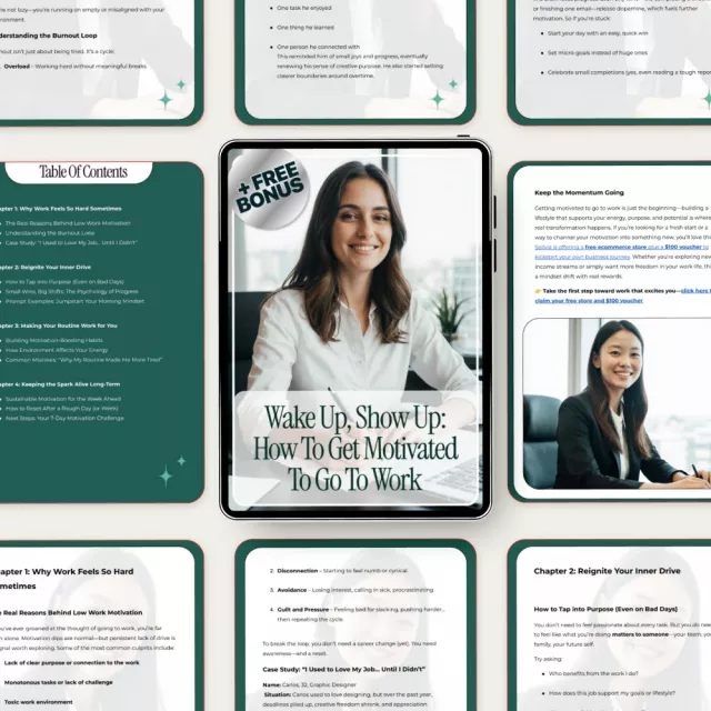Some mornings, getting out of bed for work feels heavier than it should. If you’ve ever searched for how to get motivated to go to work and still felt stuck, this guide was created for you. Wake Up, Show Up: How to Get Motivated to Go to Work is a practical, compassionate digital guide designed to help you rebuild motivation without pressure, guilt, or unrealistic “hustle” advice. Instead of telling you to push harder, it shows you how to work with your energy, mindset, and real-life challenges.