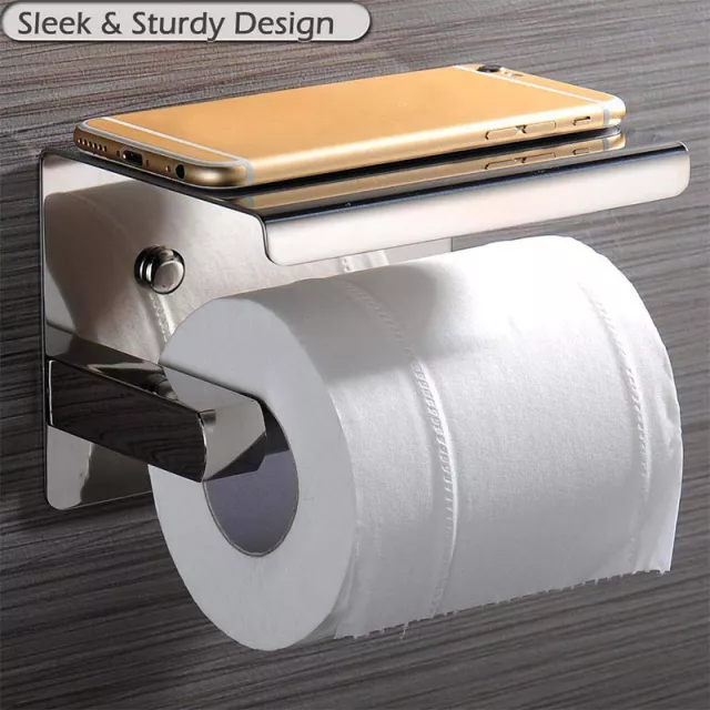 Wall Mounted Stainless Steel Toilet Paper Holder with Phone Shelf