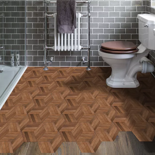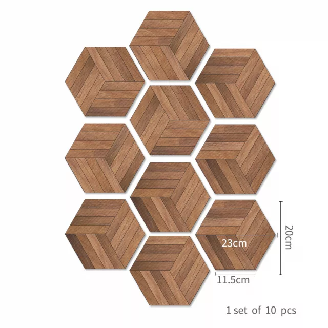 Walnut Wood Grain Hexagon Waterproof Self-Adhesive Wall Stickers