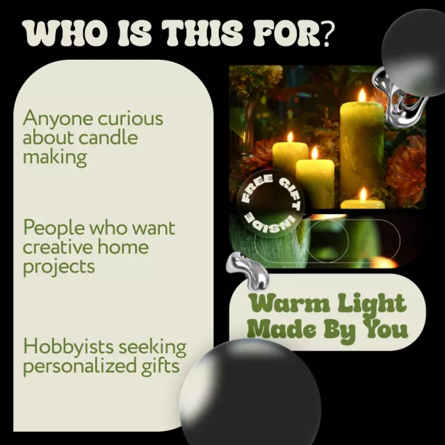 Unlike other generic candle-making guides, Warm Light Made by You combines practical step-by-step instructions, beginner-friendly tips, and creative techniques with a focus on using AI tools for planning and inspiration. It’s more than a checklist—it’s a complete eBook that guides you from first pour to finished candle, while helping you troubleshoot and refine your results for lasting satisfaction.