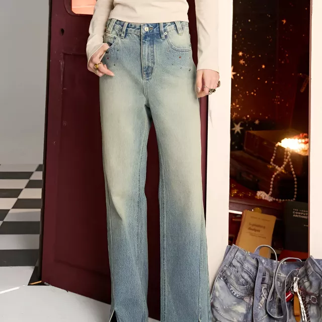 Step into effortless style with these washed blue straight-leg jeans, designed for women who love comfort, simplicity, and a touch of vintage charm. The soft, thin denim fabric gives them a relaxed feel, while the unique diamond split detail adds a subtle statement without going over the top. These jeans bring back a timeless retro vibe while still feeling fresh and easy to wear today. They are made for real daily life. From casual walks to weekend coffee dates, to running errands on cool days, they fit right in. The classic straight-leg design flatters your natural shape and gives your legs a longer, more balanced look. With a mid-rise waist and full-length cut, they sit comfortably on your waist and flow cleanly down to your ankles, perfect for pairing with boots, sneakers, or loafers.