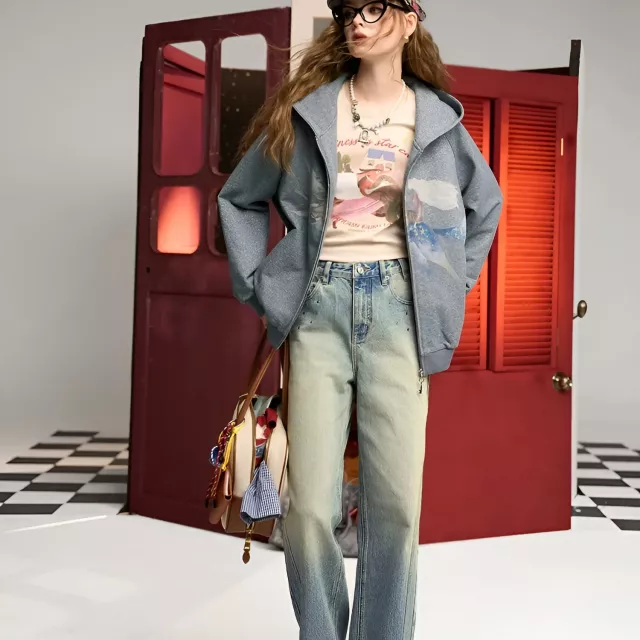 These jeans stand out because of the carefully washed blue tone and the diamond split design, giving them a stylish but relaxed personality. Unlike overly tight or stiff denim, the thin cotton fabric feels light against your skin while still offering structure. Even though they are non-stretch, they hold their shape beautifully, giving you a neat look that lasts all day. They are ideal for fall and winter seasons, especially when layered with sweaters, hoodies, or long coats. The pocket details are not only practical but also add to the casual, street-style feel, making them easy to dress up or down.