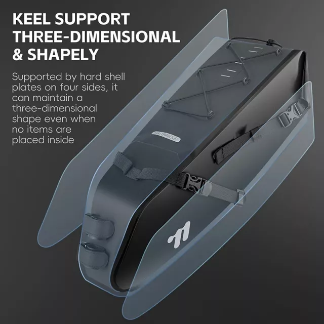 Designed for both MTB and road bike riders, this bag combines functionality with safety. Its reflective detailing enhances visibility during early morning or nighttime cycling, helping you stay seen and safe. The bottom is reinforced with a spliced keel for added stability, ensuring your bag holds its shape even on bumpy terrain. Installation is quick and easy, so you can attach it to your bike and be ready to roll in minutes.