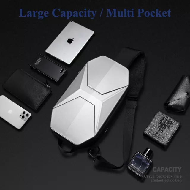 Waterproof Hard Shell Crossbody Chest Bag with USB Port for Travel & Sport