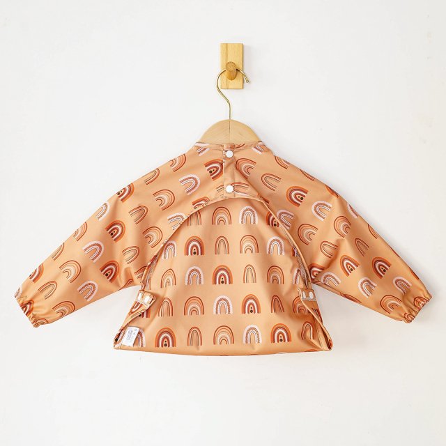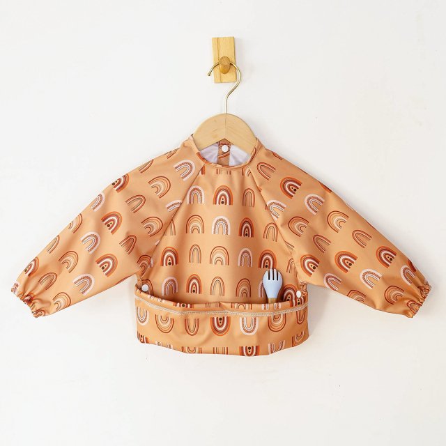• Mess-Proof Design: Full-coverage long sleeves and a wide pocket catch spills, crumbs, and food before they reach your baby’s clothes or the floor.
