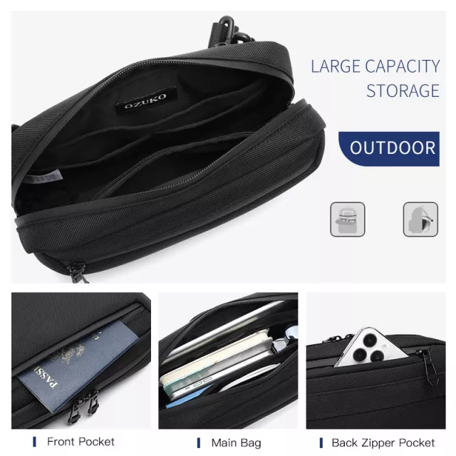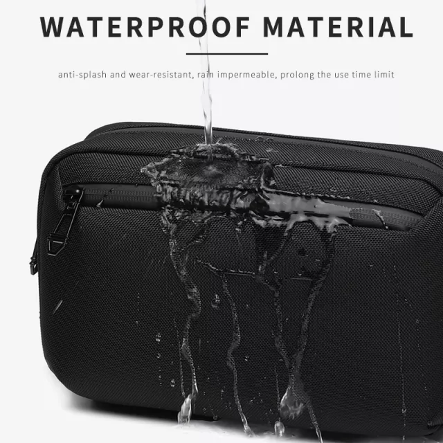 This bag features a sleek clutch-style shape with a soft structure that feels comfortable against your body. The solid color design makes it easy to match with casual or smart outfits. Its waterproof polyester material protects your belongings from light rain and unexpected spills, making it reliable in all kinds of weather. Inside, you’ll find multiple compartments that help you separate and organize your items neatly.