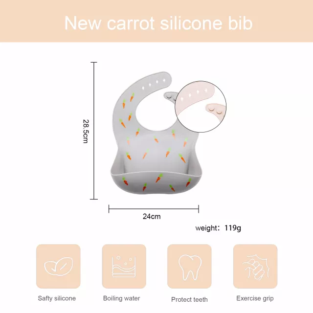 Introduce your little one to mealtime fun without the mess with our Waterproof Silicone Baby Bib. Designed for infants and toddlers, this adorable bib features a charming cartoon carrot design that will delight your child while keeping their clothes clean. Whether you’re at home or on the go, this bib is an essential accessory for every parent looking to simplify feeding time.