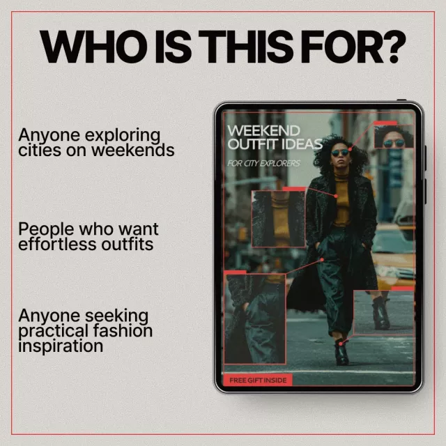 This guide is for city explorers, travelers, creatives, and anyone who wants effortless weekend outfits without overthinking. What sets it apart is the combination of real-world outfit scenarios, seasonal flexibility, and modern AI-powered styling tools, all in one easy-to-follow digital resource.