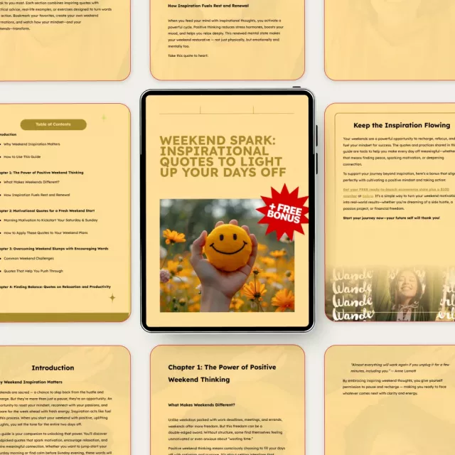 Unlike other digital resources, this guide offers more than just quotes—it provides insights on why weekend inspiration matters, practical advice for tackling common weekend challenges, and a roadmap for using these quotes in real life. You’ll learn how to make your weekends work for you, leaving you feeling refreshed and ready to tackle the week ahead.