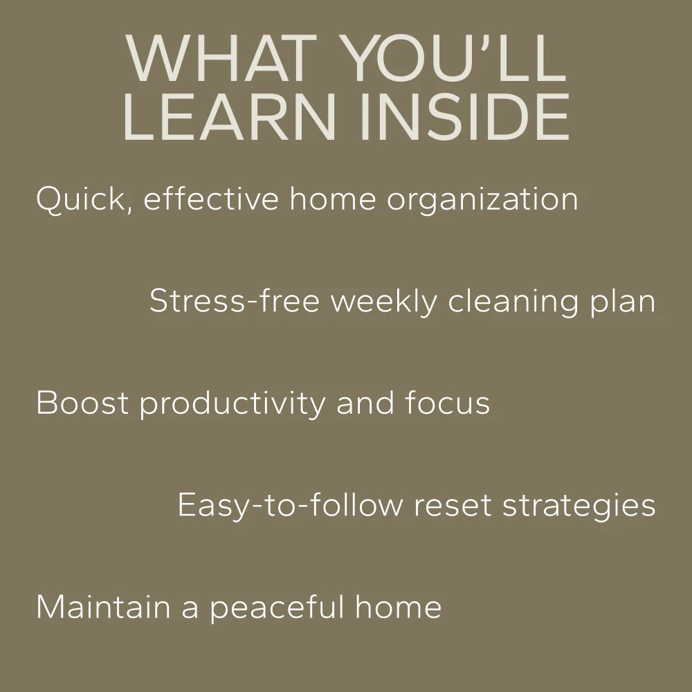 This package ensures effortless home organization with simple, repeatable systems. My home stays tidy without any stress - what more could you ask for?