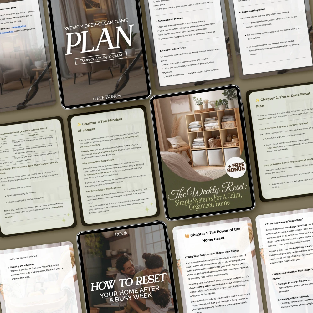 This bundle is perfect for anyone looking for the best way to reset your home weekly. Whether you’re a busy professional, a parent, or just someone who needs a little help staying organized, these resources will make home resets easy and achievable. Even if you’ve tried other methods in the past, the simple systems and actionable steps in this bundle will keep you on track week after week.