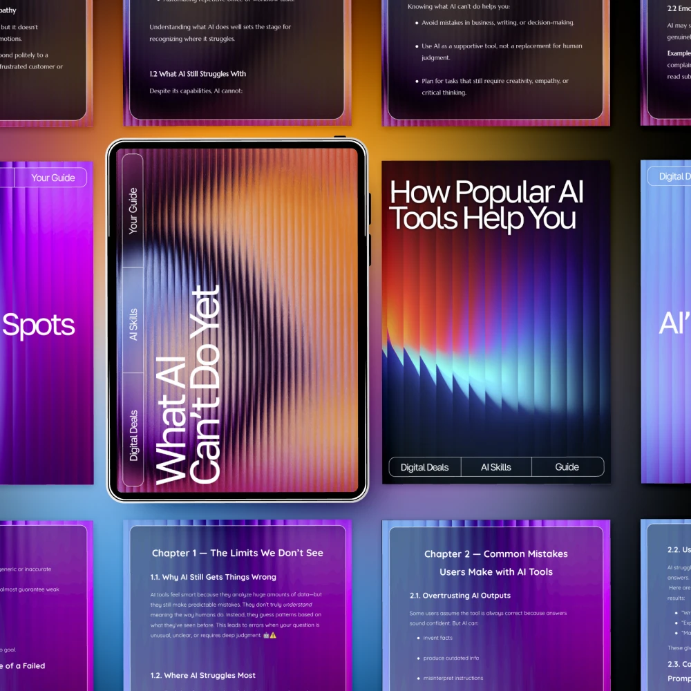 Unlike generic AI guides, this bundle focuses on balance. It doesn’t just tell you what AI can do—it explains what it can’t, why that matters, and how humans still play a critical role. The content is practical, easy to understand, and built for real-world use, not technical overload.