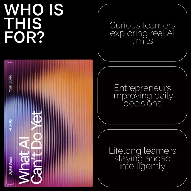 Artificial intelligence is everywhere—writing content, generating images, and helping with daily tasks—but do you really know where its limits are? “What AI Can’t Do Yet” is a clear, easy-to-read digital guide that demystifies the boundaries of modern AI. If you’ve ever wondered what ai cannot do yet explained simply, this guide will help you understand exactly that—without the tech jargon. Perfect for entrepreneurs, content creators, educators, or anyone eager to use AI wisely, this downloadable resource makes complex ideas simple and practical.