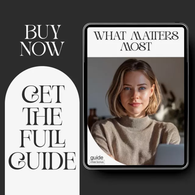 Get crystal clear on what truly matters in your life with What Matters Most, a transformative digital download designed to help you cut through noise, overwhelm, and constant busyness. This thoughtfully crafted guide eBook and bonus checklist walk you step-by-step through understanding your real priorities, choosing them with confidence, and staying aligned with them every single day. Whether you’re rebuilding focus, creating a more meaningful routine, or seeking a fresh sense of direction, this resource helps you reconnect with your values using simple tools—and even AI-powered clarity prompts.