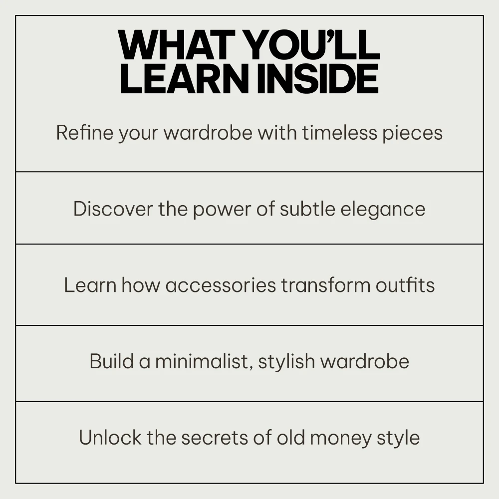 • Get practical, actionable advice from experienced fashion experts on how to effortlessly embrace the old money style and minimalist wardrobe choices.