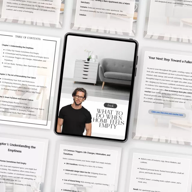 Unlike typical décor guides, What to Do When Home Feels Empty dives deep into the emotional connection between you and your surroundings. It’s not just about furniture—it’s about feeling grounded, joyful, and truly at home. This eBook combines psychological insights, practical interior tips, and digital tools into one warm, easy-to-follow guide for modern living.