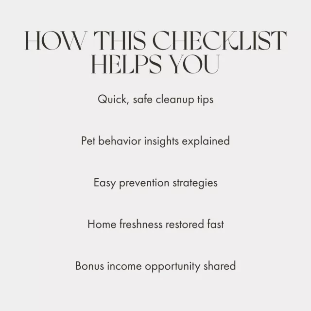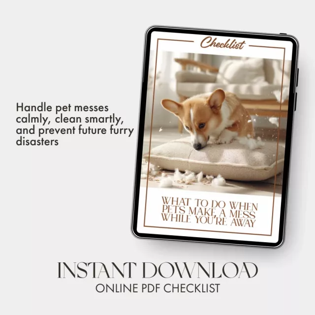 This checklist is designed for dog and cat owners who want fast, effective solutions for pet messes. It’s perfect for anyone who’s ever wondered what to do when pets make mess while away — offering reassurance, structure, and expert-backed cleaning strategies all in one place.