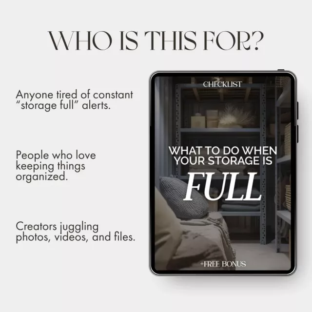 Unlike other digital decluttering guides, What to Do When Your Storage Is Full doesn’t just tell you what to delete—it gives you a repeatable system for long-term storage management. You’ll not only clear space today but also set up smarter habits for the future.