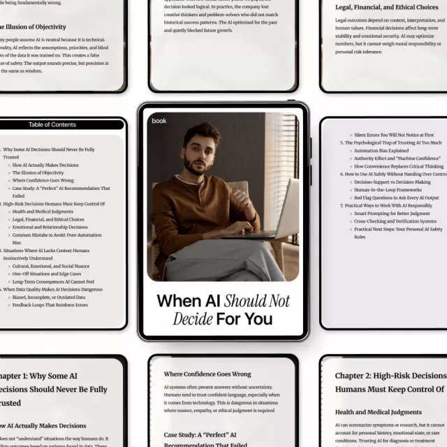 In an age where artificial intelligence seems to touch every part of our lives, it’s easy to assume that AI always knows best. But the truth is, there are many situations where relying solely on algorithms can lead to serious mistakes. When AI Should Not Decide for You is a comprehensive digital eBook designed to show you exactly which AI decisions people should not trust and why keeping human judgment at the center is critical. This guide combines real-world examples, expert insights, and practical strategies to help you safely navigate the AI-driven world.