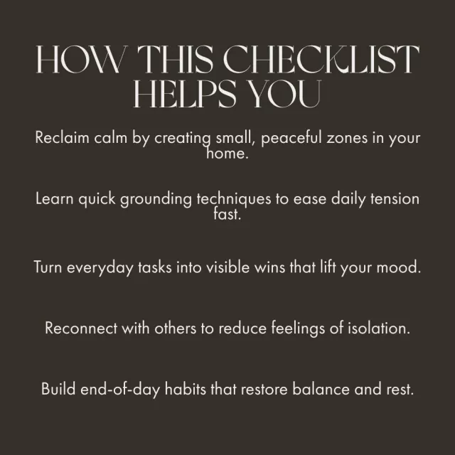 I've been feeling so overwhelmed lately, but this checklist has made such a difference. It's given me practical steps to follow which have genuinely reduced the stress in my life.