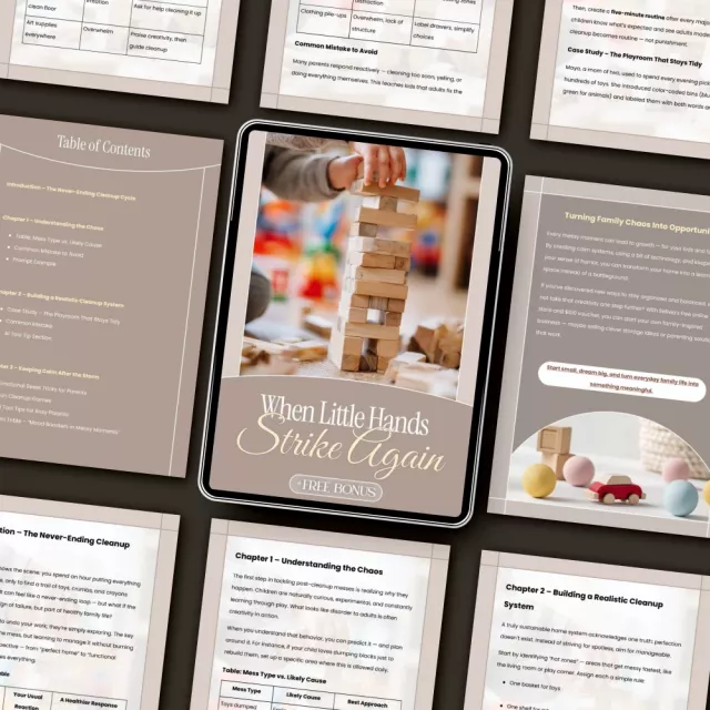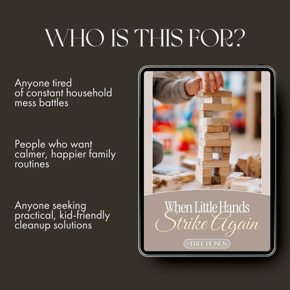 Don’t let the never-ending mess steal your calm. Download When Little Hands Strike Again today and discover what to do when kids mess after cleaning—so you can finally enjoy your home and your family time again.