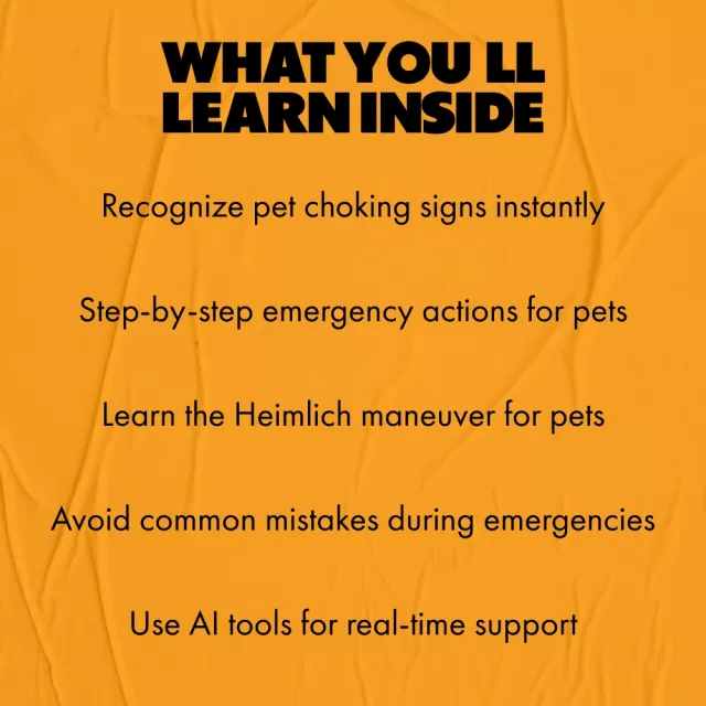 • Immediate Actions You Can Take – Step-by-step instructions on how to clear your pet’s airway, perform the Heimlich maneuver, and know when to seek veterinary help.